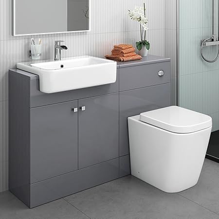 Designer Gloss Grey Basin Sink Toilet Pan Wc Bathroom Rimless Combined Vanity Unit Furniture Storage