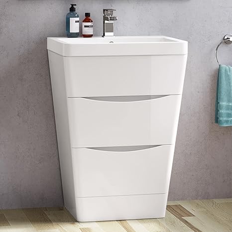 600 Mm Modern White Vanity Sink Unit Ceramic Basin Bathroom Storage Furniture